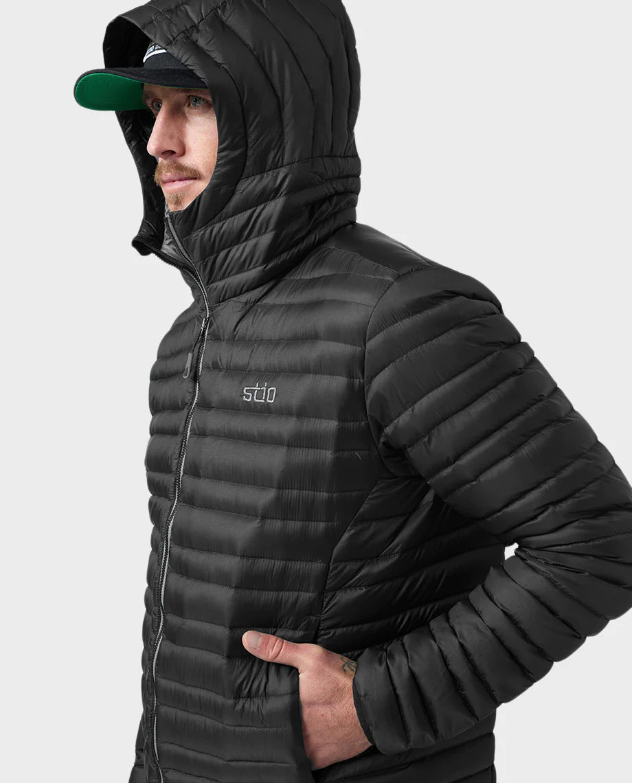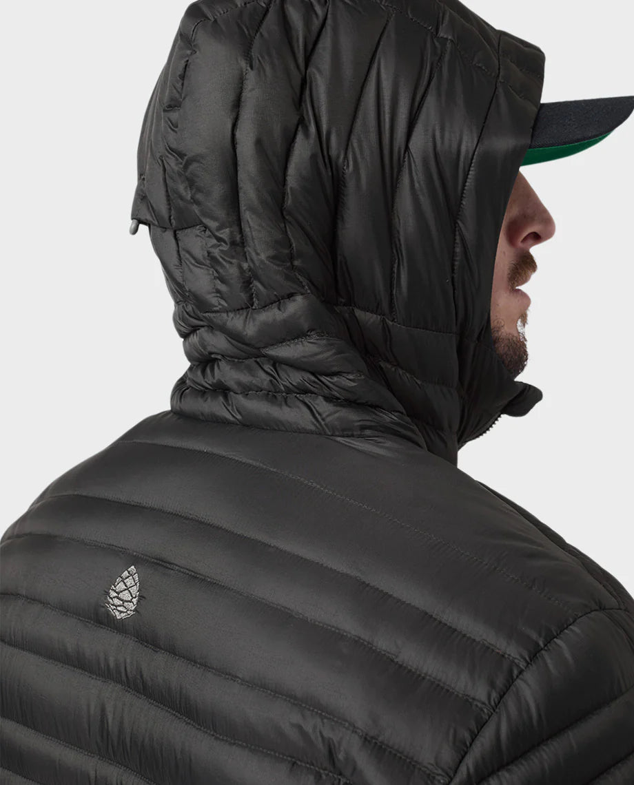 Drawing inspiration from the passion that drives us to push ourselves in all of our alpine pursuits. Around town or in the backcountry, this hooded jacket will stick with you in all seasons due to its lightweight packability and layerable warmth. HyperDRY™ 800-fill down delivers trusty warmth for minimal weight that layers easily under a shell or rolls comfortably on its own. A high-collar, halo-adjust storm hood enables clear peripheral vision, while the 100% recycled Pertex® Quantum ripstop exterior sheds moisture with an 80/20 DWR finish and a semi-gloss surface texture. Flat-front hem adjustment and an internal stow pocket streamline it for work or play.