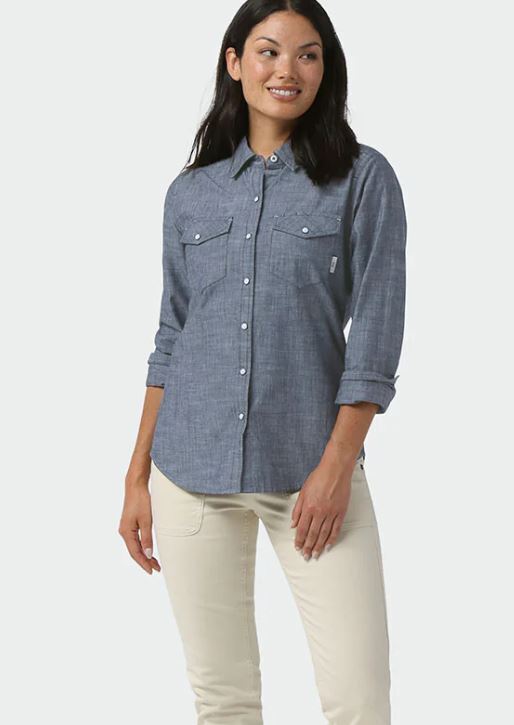 The original ethic of Stio's hometown was founded on rugged work outside. They’ve borrowed from that lineage with the Ashton 100% organic cotton chambray shirt, which blends the toughness inherent in the timeless woven material with a skin-side softness that stays comfortable enough for long leisurely days. Pearl snaps, pinecone buttons, and classic Western detailing provide that high range identity to a piece that easily spans from work, to rest, to play. Adjustable placketed cuffs allow for an easy roll, and a shirttail hem looks good tucked in or left out.