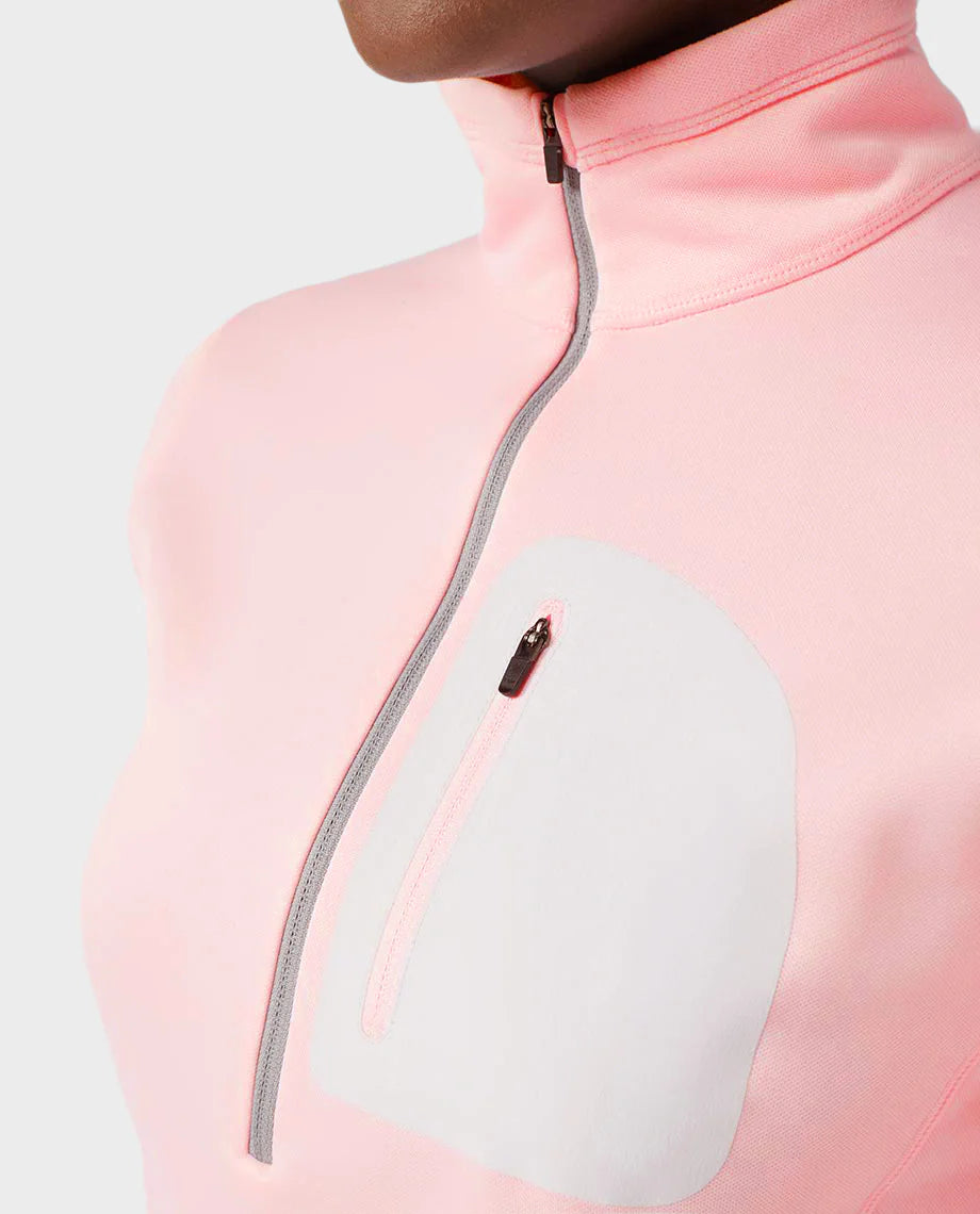 A technical, performance fleece midlayer with a wicking finish and smooth, heathered face.