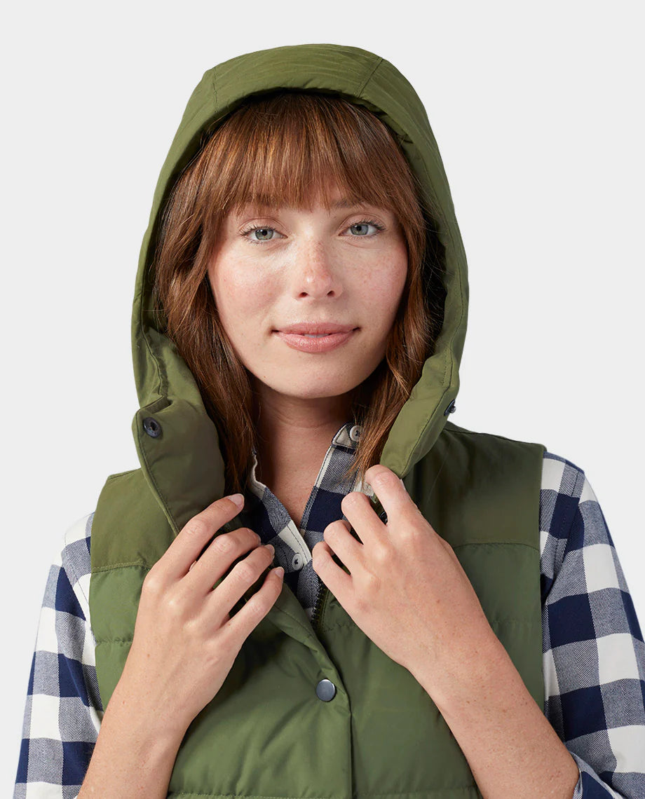 Mountain West style has never looked fresher—or felt warmer—than with our heritage-inspired down vest. Designed with the softer and lighter materials favored by modern mountain life to keep both warmth and style at a premium, its weather-shedding poly outer upholds the durability of its old-school ranching counterparts yet has a soft, natural feel. Lightweight, responsibly-sourced 650-fill down stuffed into generous, oversized baffles and an insulated hood keep out the chill.