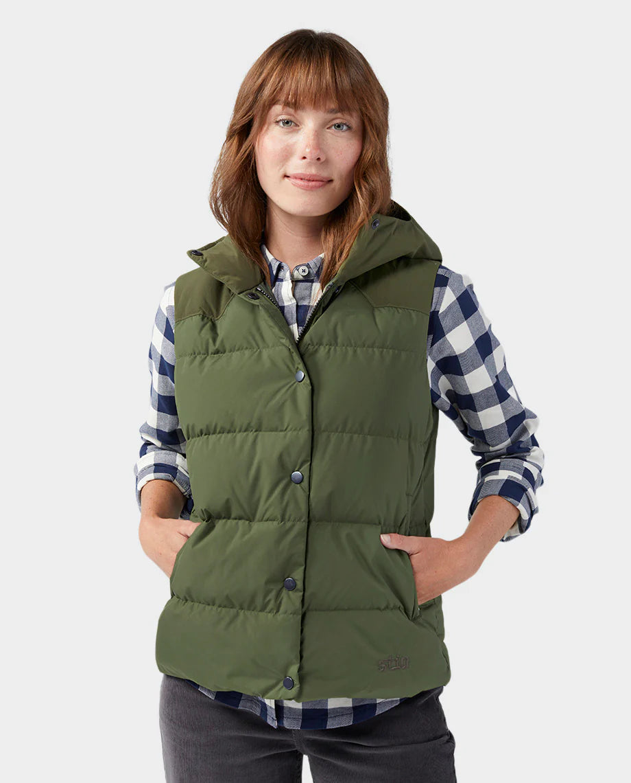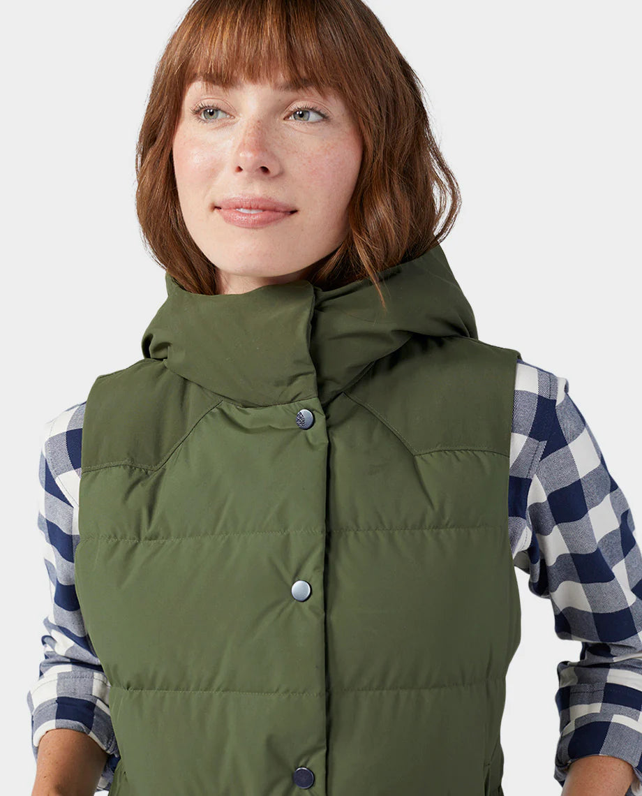 With ranching roots and modern warmth, this trend-forward vest is an adventure in mountain town fashion with toasty, lightweight down and a comfortable, durable outer.