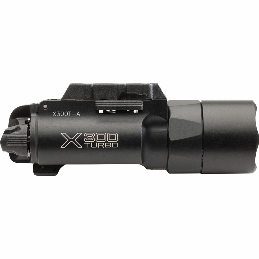 Keep Your Distance. Designed to meet the needs of hard-use professionals, the Turbo Series version of our best-selling X300 handgun WeaponLight family delivers a stunning 66,000 candela of intense, tightly focused, far-reaching white light with a hot spot that is tremendously effective. You can count on the X300T-A to help you positively identify threats at extreme distances while also providing ample spill light to help you maintain situational awareness. Ambidextrous switching provides one-finger control of momentary-on or constant-on activation. Its rugged, aerospace aluminum body is Mil-Spec hard anodized for scratch and corrosion resistance and sealed to make it weatherproof. It’s also IPX7 waterproof to 1 meter for 30 minutes. The X300T-A delivers a standard of excellence you can trust.