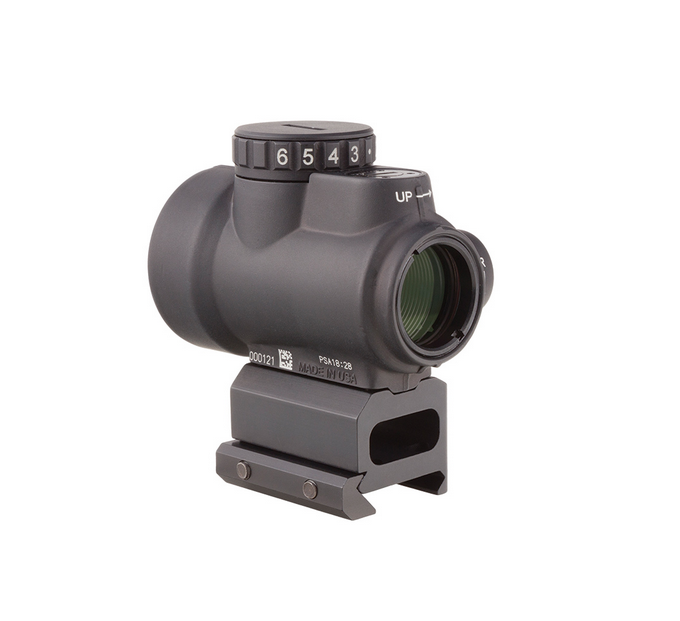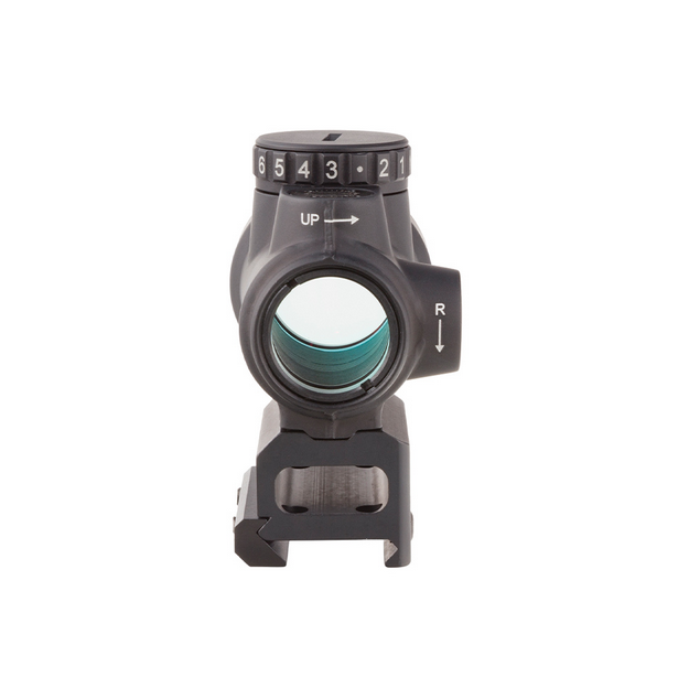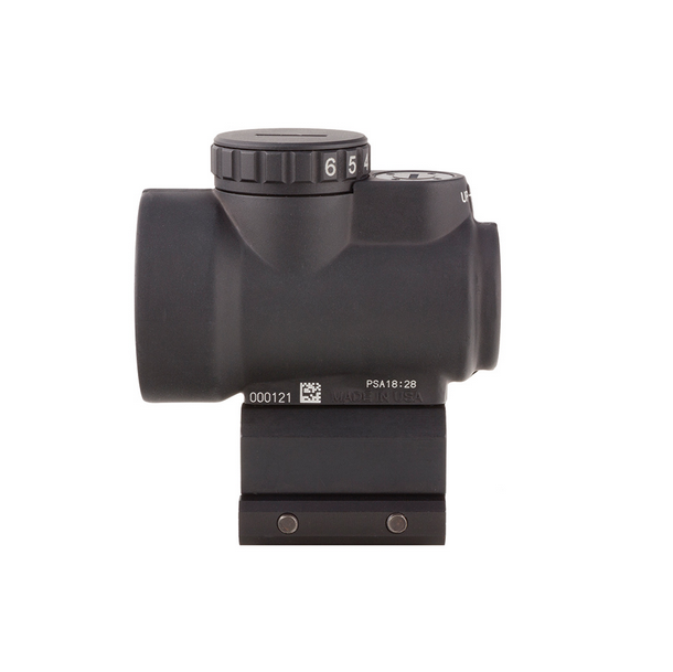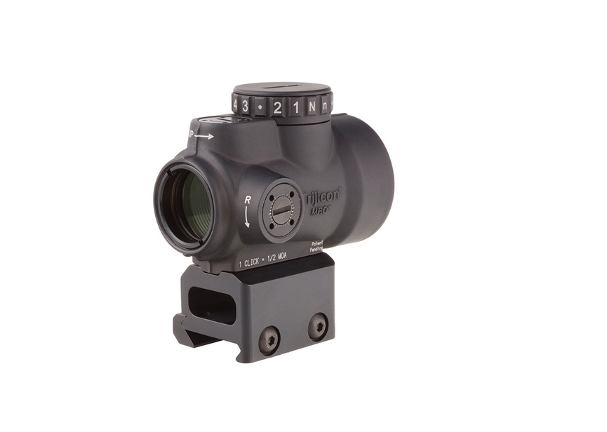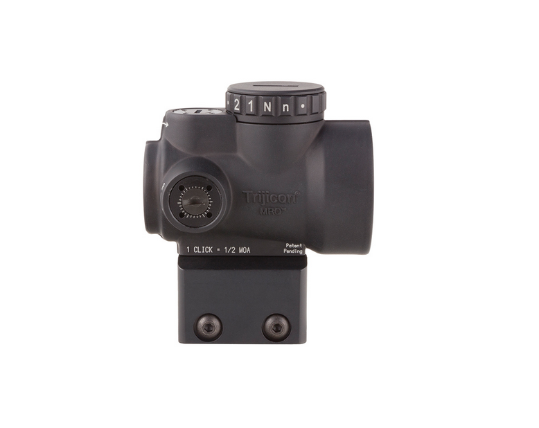 The Trijicon Miniature Rifle Optic (MRO®) is a reflex-style, sealed sight intended for use on rifles, carbines, and shotguns to provide fast target acquisition. It is designed to be used with both eyes open, providing the operator with maximum situational awareness. The large aperture and tapered light path maximizes the viewing area in such a small optic, allowing for fast target engagement – especially from non-standard shooting positions. Advanced lens coatings and electronics produce a crisp red dot. The brightness control dial on the MRO is specifically designed for ambidextrous usage. With a mid-adjustment “off” position and eight discernible brightness settings, this brightness dial allows for quick and ergonomic adjustments. The MRO features fully protected adjusters that maintain zero even during rough handling, and can be adjusted without the need for special tools. Hard-anodized, forged 7075-T6 housing is fully sealed and waterproof, providing durability in demanding conditions.