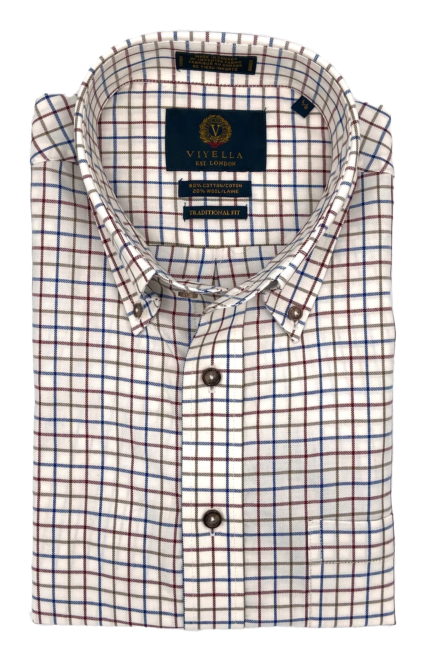 The Viyella Men's Button-down Shirt is a timeless wardrobe staple perfect for the modern man. Blending 80% cotton for comfort and 20% wool for a luxurious touch, this stylish button-down is a great addition to any outfit and perfect for any occasion.
