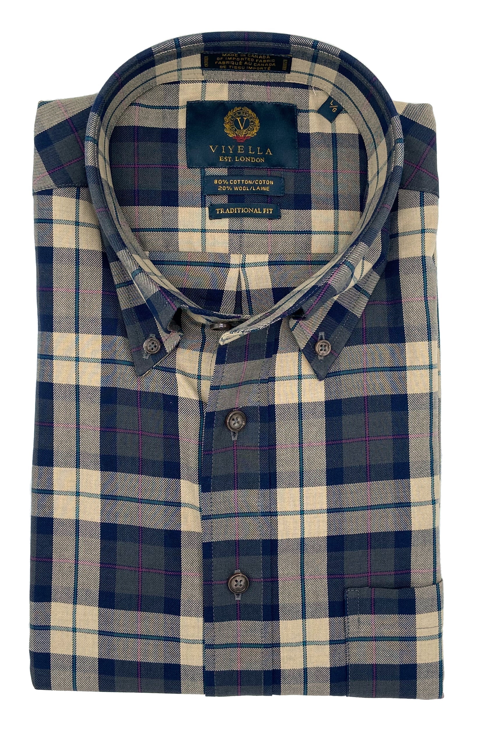 The Viyella Men's Button-down Shirt is a timeless wardrobe staple perfect for the modern man. Blending 80% cotton for comfort and 20% wool for a luxurious touch, this stylish button-down is a great addition to any outfit and perfect for any occasion.