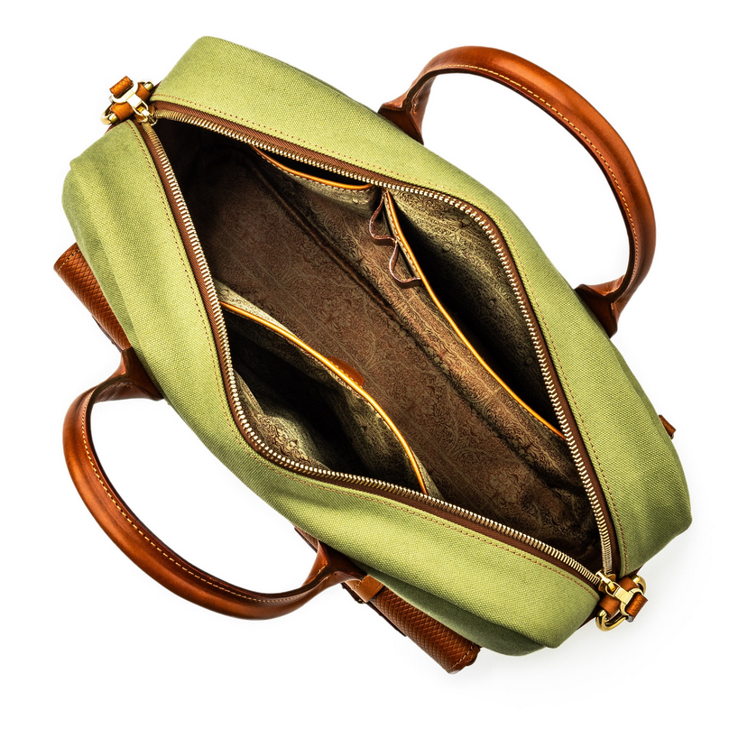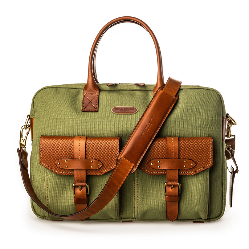 Bournbrook Briefcase in Safari Green Canvas and Leather