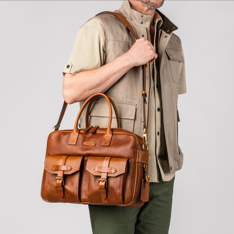 The Bournbrook is a soft leather briefcase created with the commuter in mind, traveling between their fine country home to meetings in town. Thoughtfully designed with secure compartments for laptops, devices and documents. Handcrafted in England.