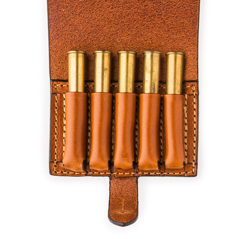 The Westley Richards 5 Round Closed Ammunition Belt Wallet will keep you organized and prepared while stalking or on safari. Designed to perfectly fit onto the Westley Richards 2 inch leather belt and built to carry 5 rounds of ammunition safely within reach.