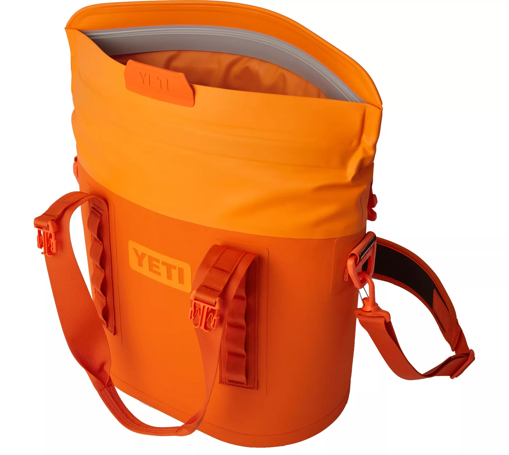 The newest member of the Hopper® Soft Cooler family is here with the tough-as-nails Hopper® M15. Made with our durable MagShield Access, the extra-wide mouth top stays open when needed, making it easier than ever to load and unload food and drink for weekend excursions. Equipped with a strip of durable and powerful ultra-strong magnets, the top seals tight and locks cold in, with the Quick-Release Buckles add an extra layer of protection. And like the rest of Yeti's Hopper® Soft Coolers, the Hopper® M15's built in HitchPoint Grid lets you attach accessories like the Rambler Bottle Sling and SideKick Dry Gear Case for extra utility on the go.